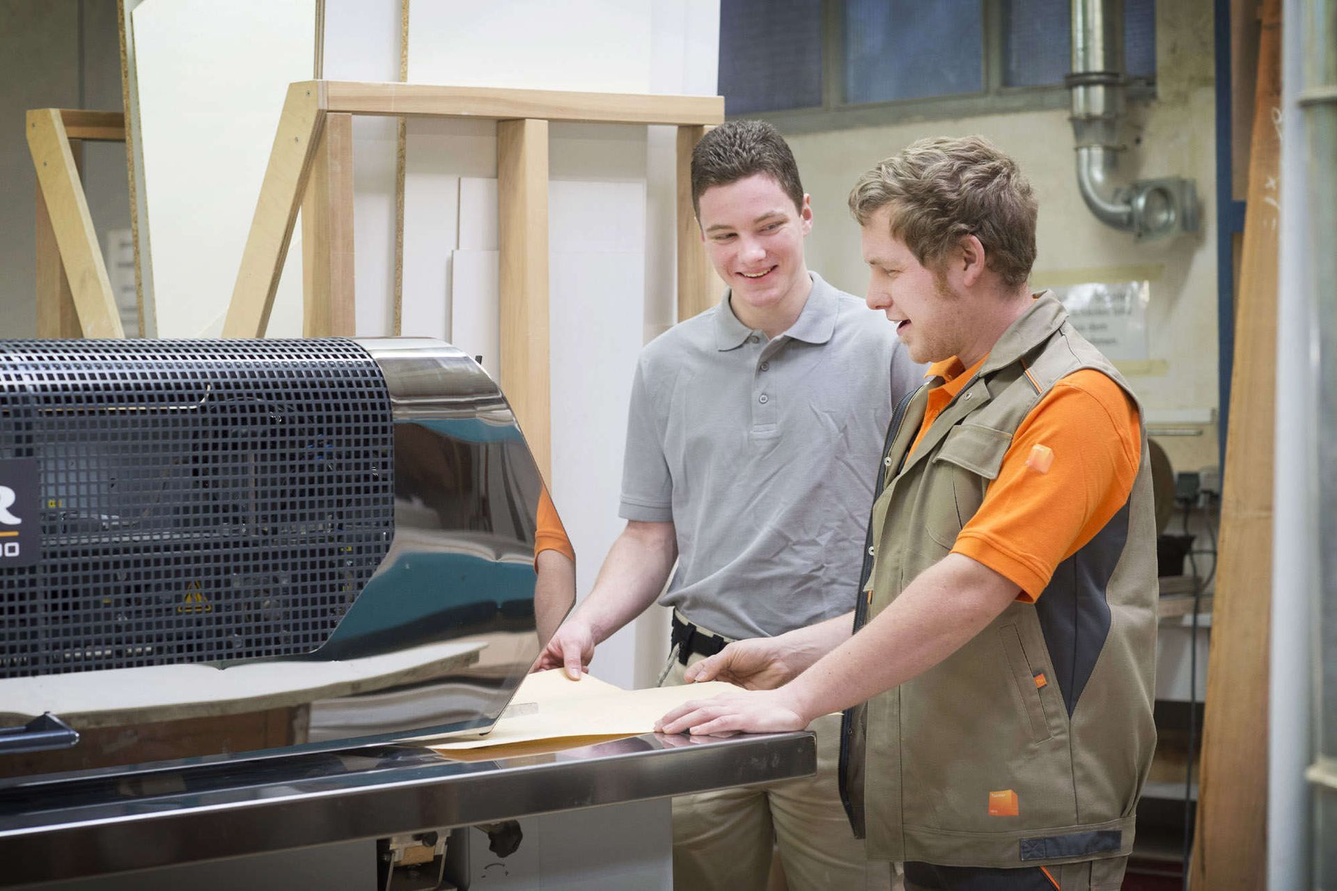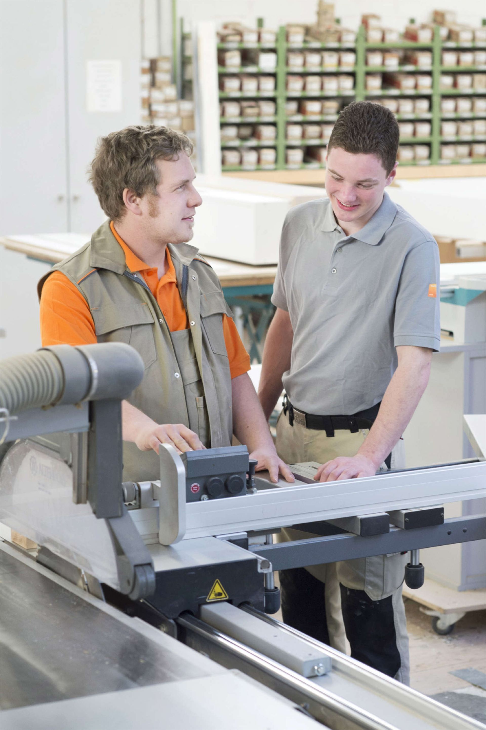 Die Ausbildung zum Tischler findet im dualen System statt – das heißt so-wohl im Ausbildungsbetrieb als auch in der Berufsschule. Zusätzlich dazu lernen die Auszubildenden in der sogenannten überbetrieblichen Unterweisung unter anderem die wichtigsten Grundlagen im Umgang mit Maschinen und bei der Bearbeitung von Oberflächen. Ihr Können stellen die jungen Nachwuchstischler unter anderem mit dem Bau ihres Gesellenstücks unter Beweis.